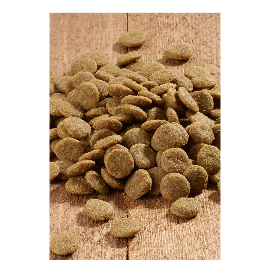 Cereale (făină de orez, orz, făină de porumb), carne și subproduse animale (făină de vită, făină de pasăre), legume (fulgi de cartofi*), pește și subproduse din pește (făină de pește de mare), semințe (semințe de in, ciulin de lapte) semințe, uleiuri și grăsimi, subproduse vegetale (subproduse vegetale), celuloză, ouă și produse din ouă (pudră de ouă întregi), extract de drojdie * (sursă de manan oligozaharidă)
