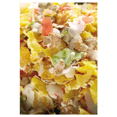 Fulgi de porumb, fulgi de ovăz, fulgi de grâu, fulgi de mazăre, morcovi, mei (pregătit), carbonat de calciu, orez (pregătit), sare de mare, ierburi